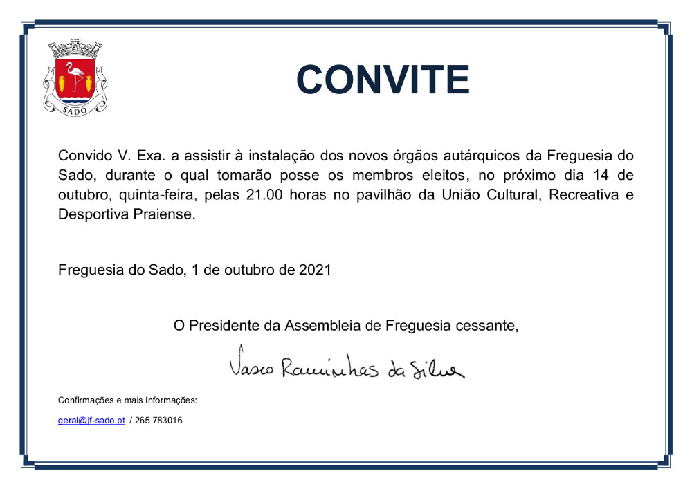 Instalação do novos órgãos autárquicos da Freguesia do Sado