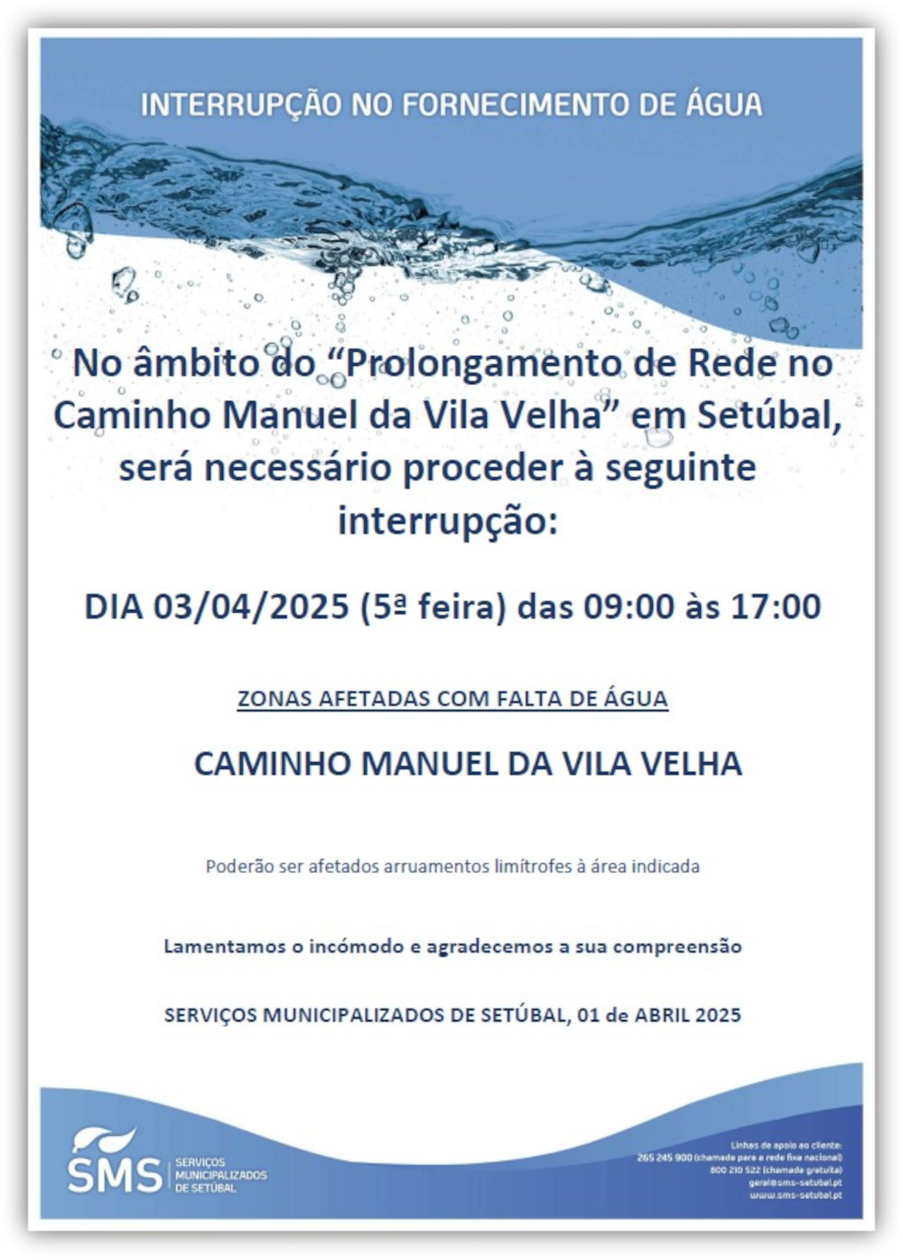 Interrupção no Fornecimento de Água