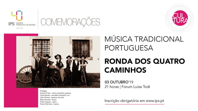 No próximo dia 03 de outubro, a partir das 21h00, o Fórum Luisa Todi é palco de um concerto de música tradicional portuguesa, protagonizado pela Ronda dos Quatro Caminhos.