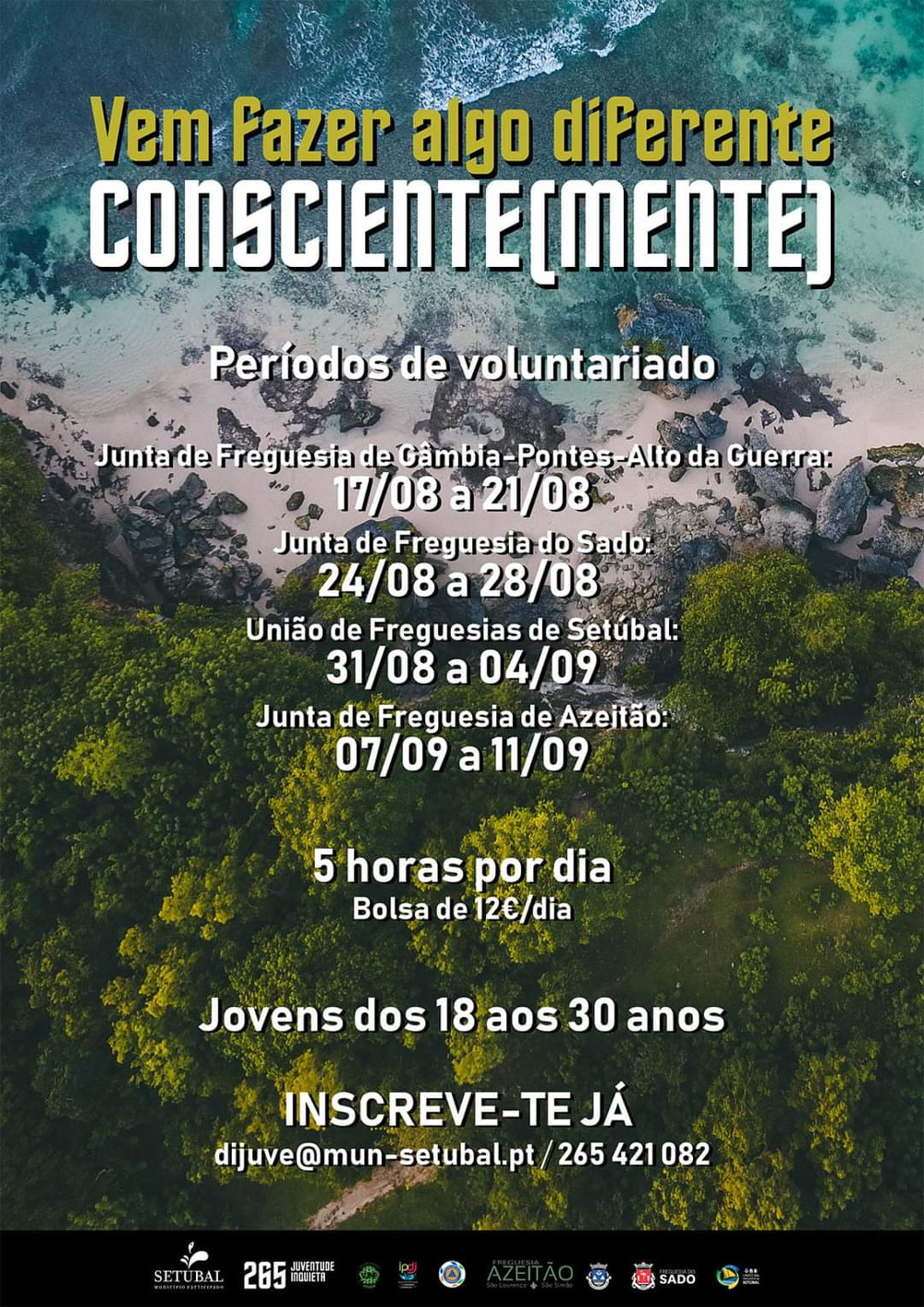 A Divisão de Juventude da Câmara Municipal de Setúbal desenvolve, a partir do próximo dia 17 de agosto, um projeto de Voluntariado Jovem para a Natureza e Florestas intitulado «Consciente(mente)»!